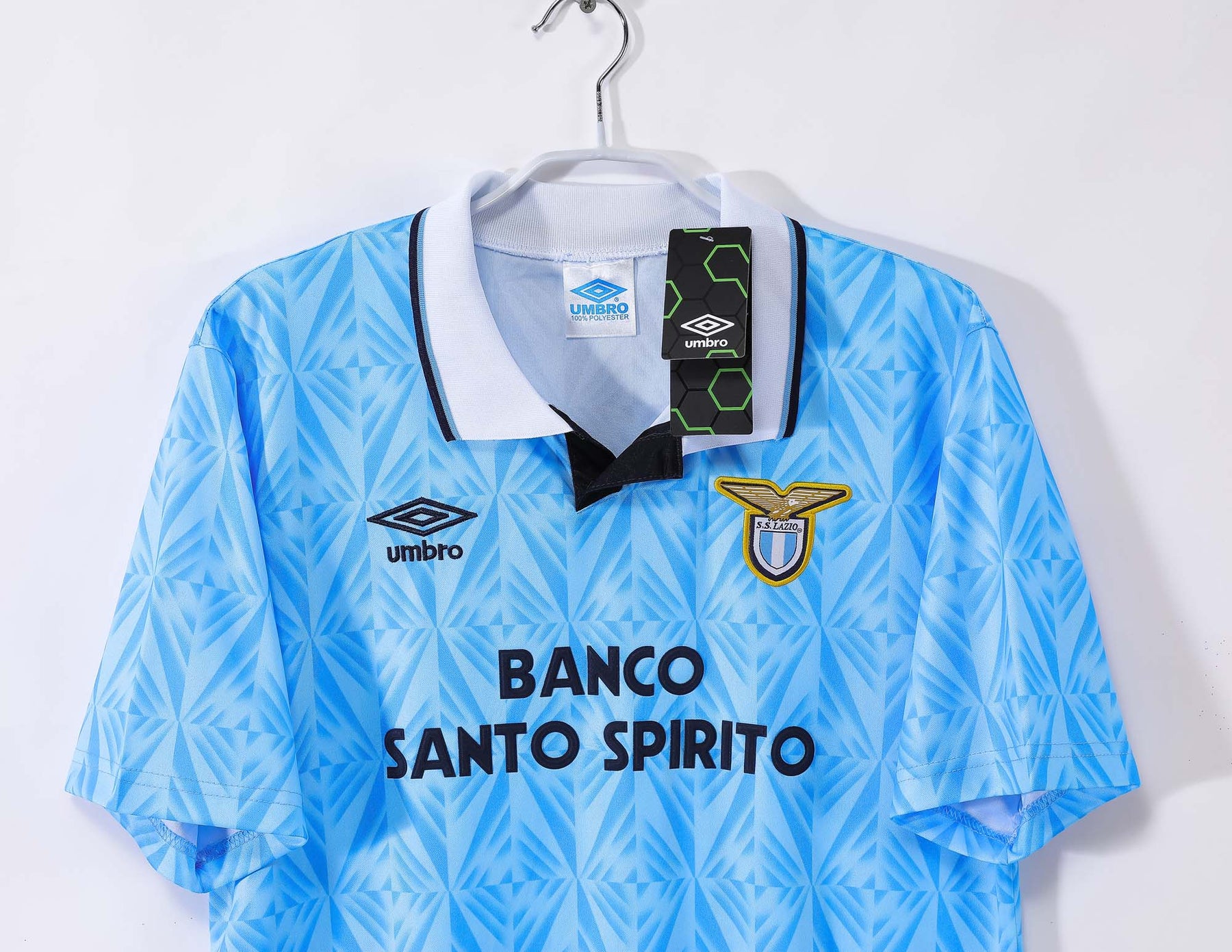 Like the other jerseys in our collection, the jersey retro vintage Lazio combines authentic details and lightweight, quick-drying fabric to provide maximum freshness and comfort for the greatest professional players. This product is made entirely from recycled polyester fibers.
